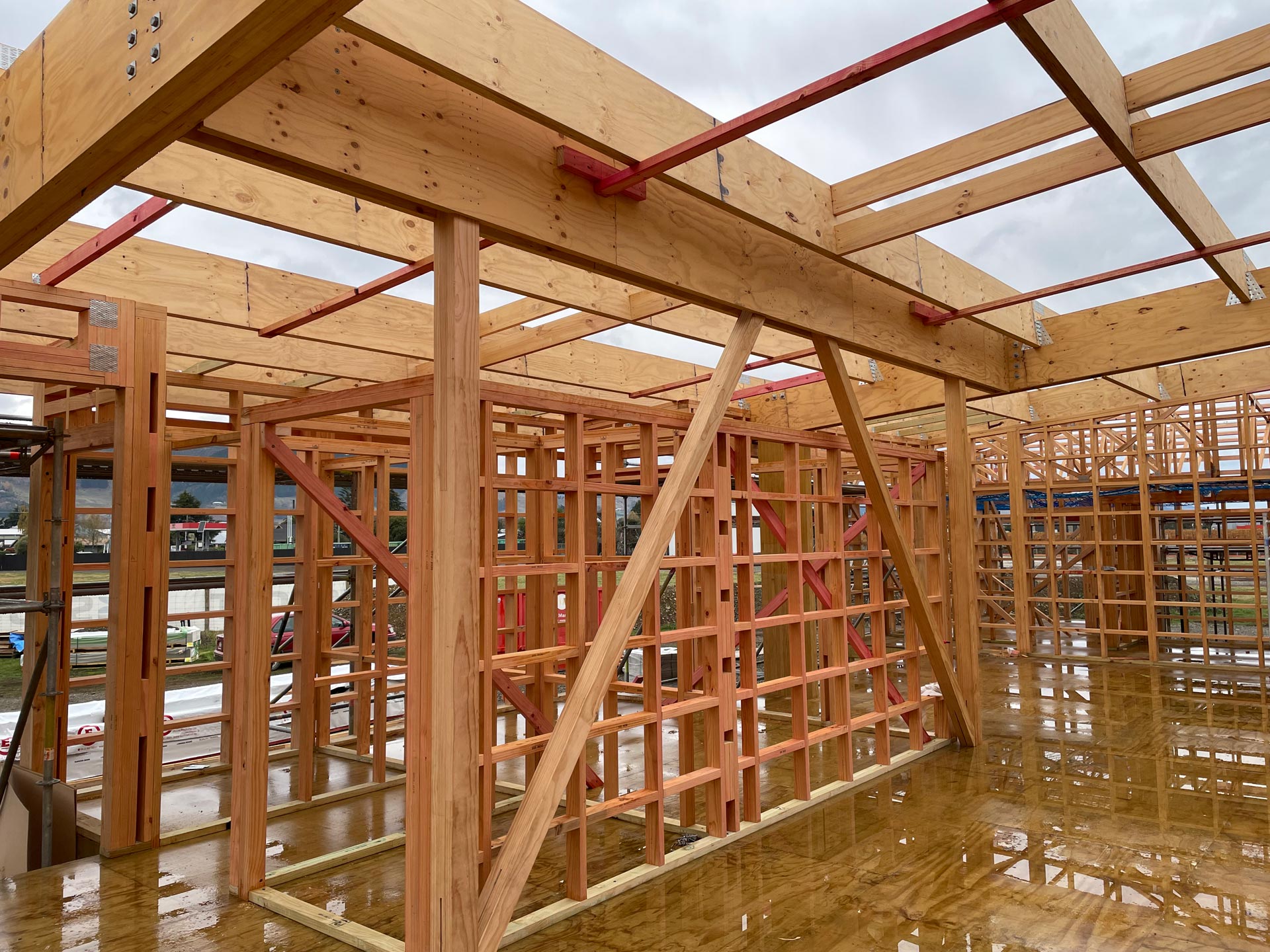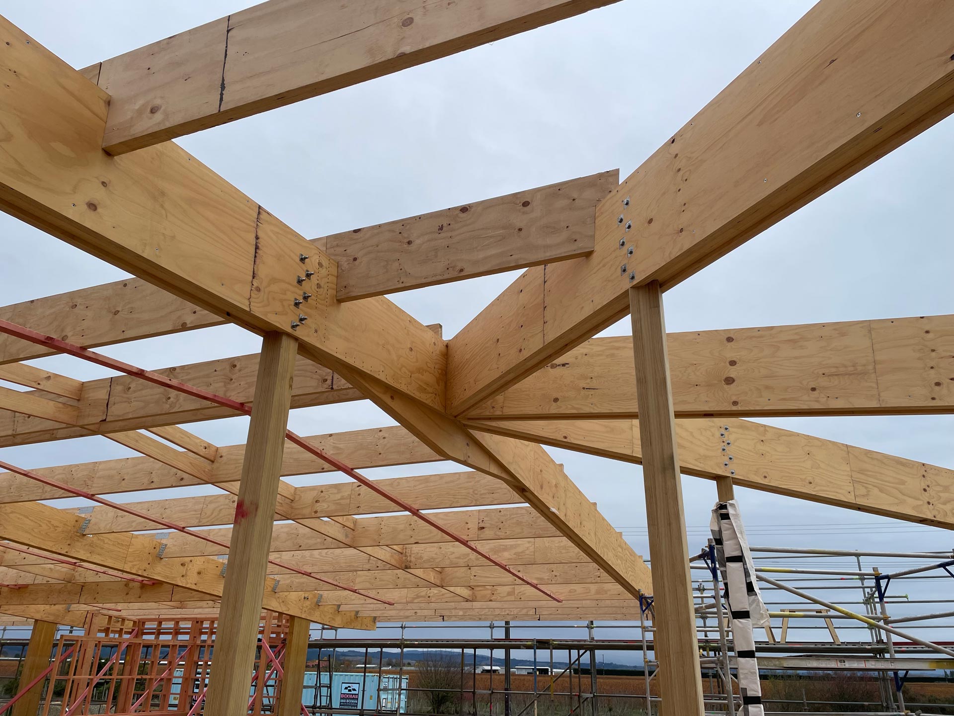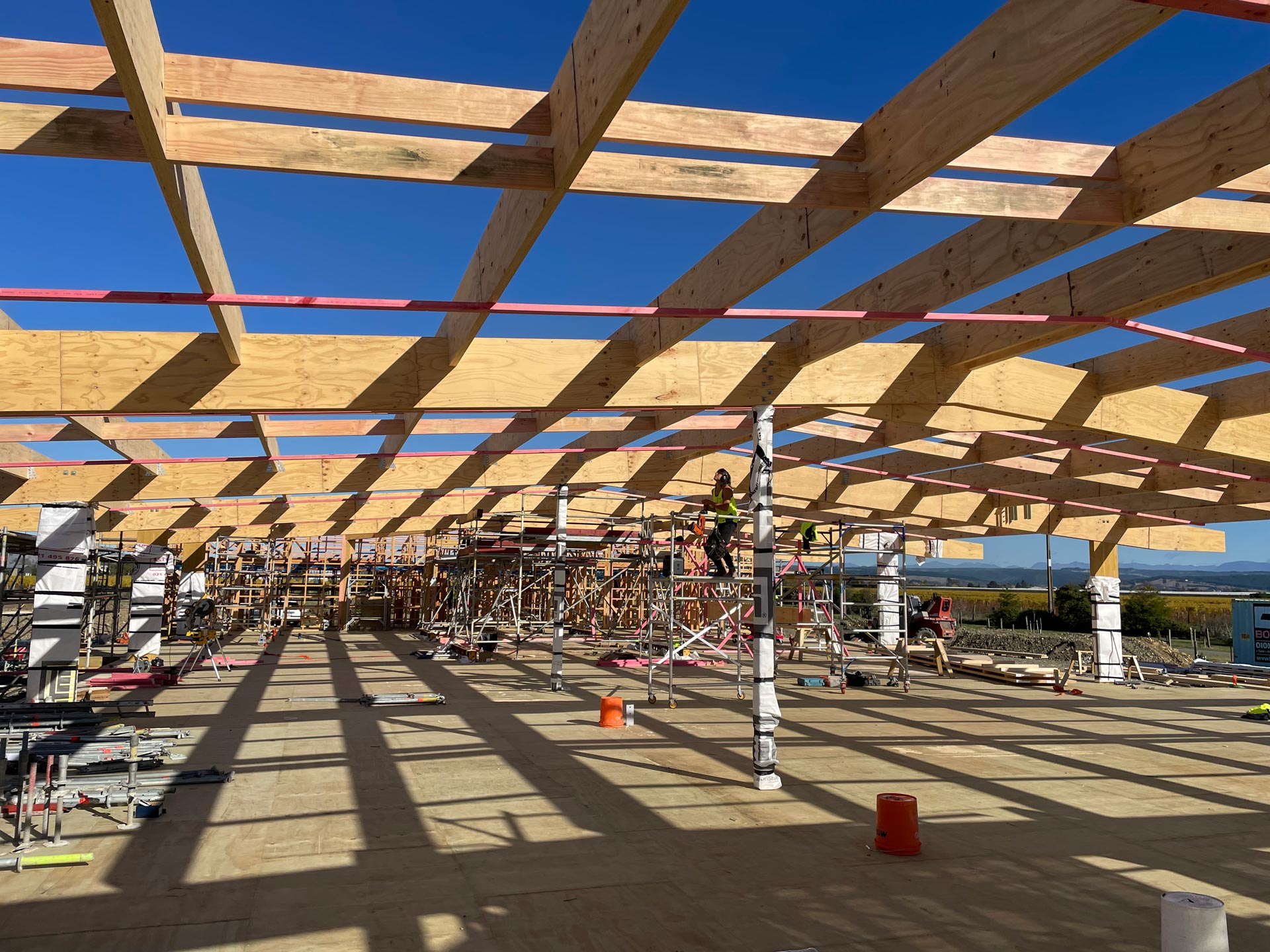 Working alongside Irving Smith Architects, this project was focused on low carbon and mass timber construction. Although in steel – screw piles were used for speed and eliminating treated timber in the ground. LVL portal frames were originally designed with central posts – then on client request went to clear span structure. The end result is a light open building predominantly constructed in timber.