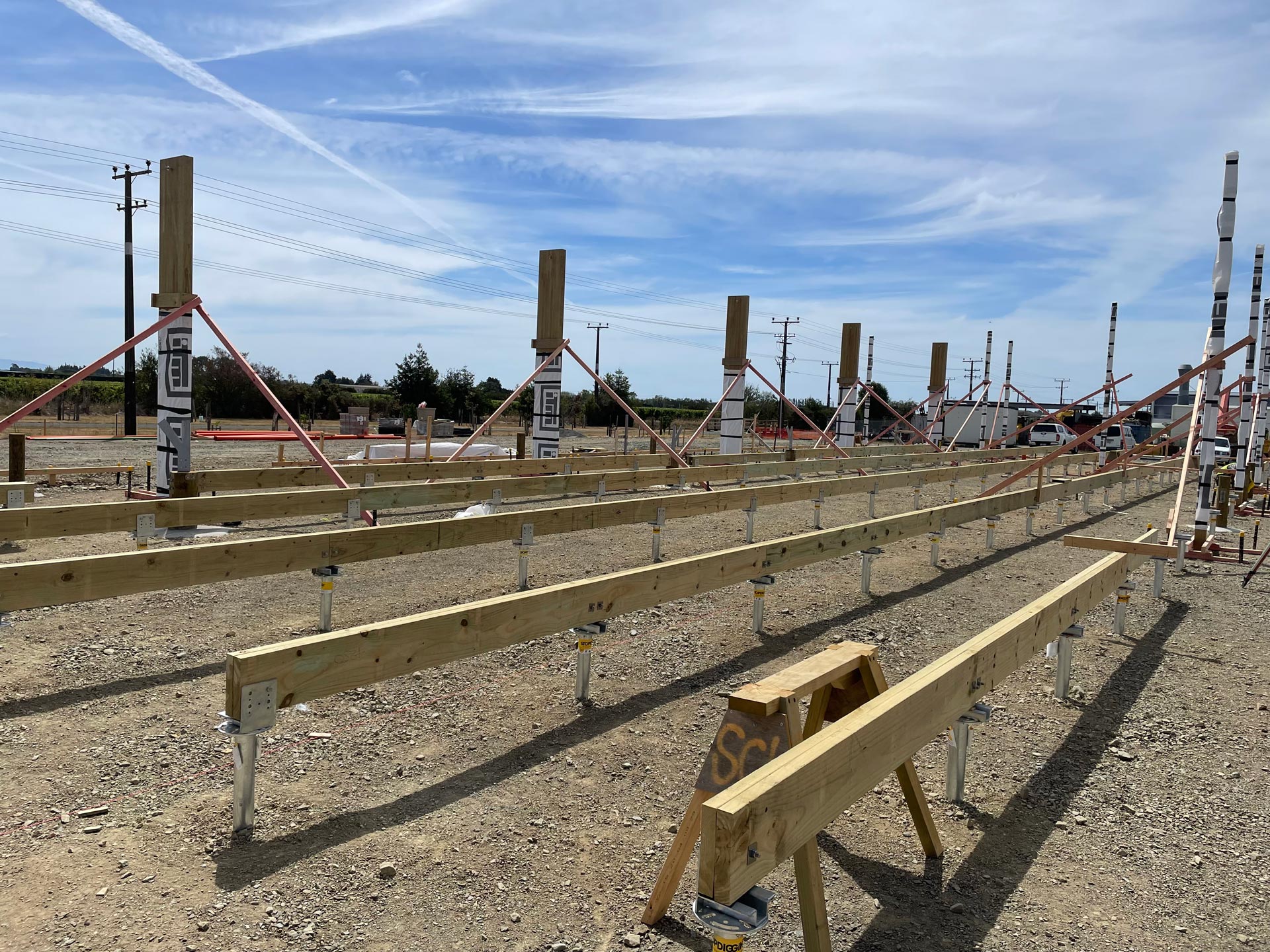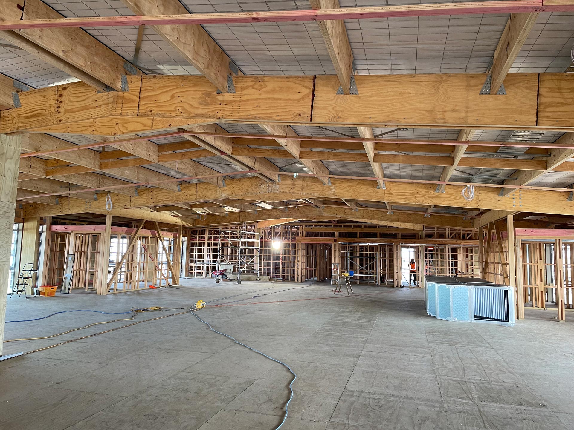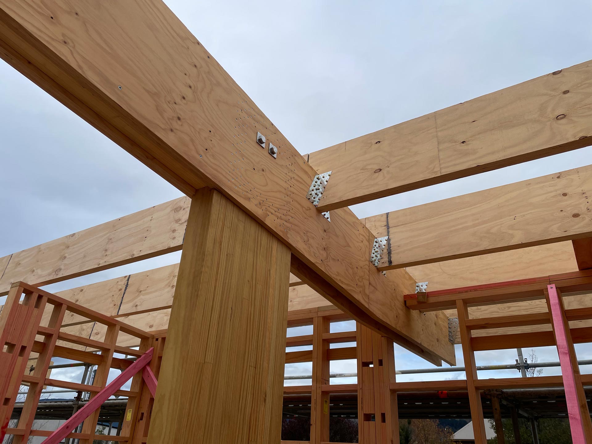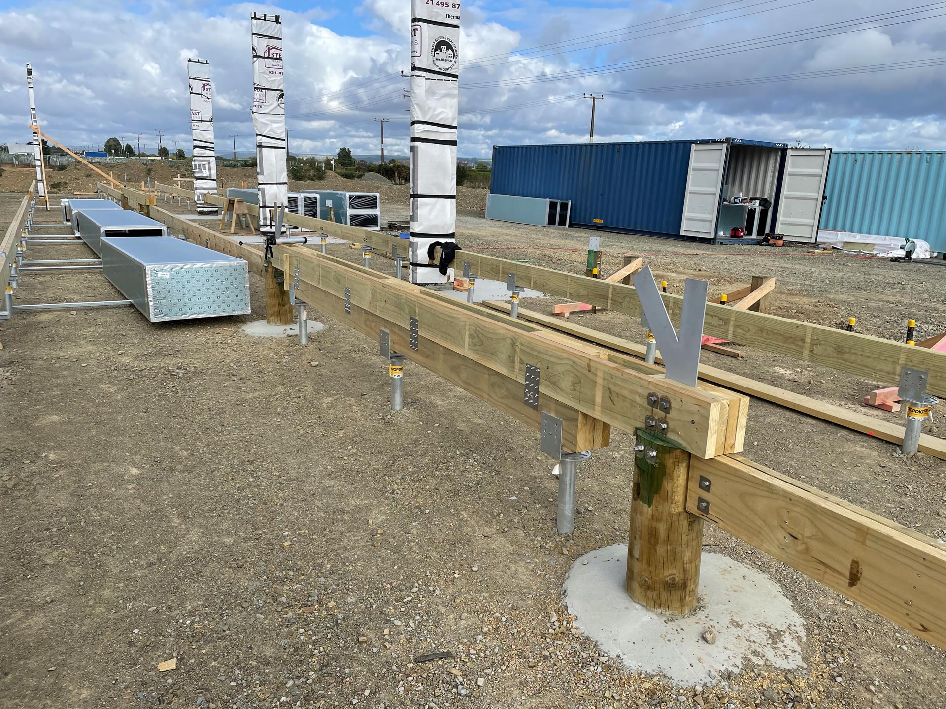 Working alongside Irving Smith Architects, this project was focused on low carbon and mass timber construction. Although in steel – screw piles were used for speed and eliminating treated timber in the ground. LVL portal frames were originally designed with central posts – then on client request went to clear span structure. The end result is a light open building predominantly constructed in timber.